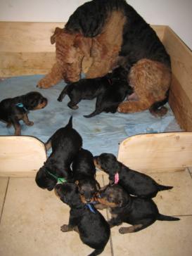 Am 13.2.2008 kam der F- Wurf zur Welt. 9 Welpen - 4 Rüden, 5 Hündinnen.